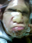 ※写真は、打ち上げ4次会(?)でラップに巻かれてラッパー気分を味わう、サポーターの会「カバチタレ」会長を務めるシガーリンの顔