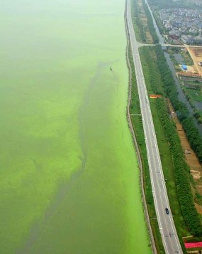 そのまま湖に流され、水質汚染で藻が大量発生!