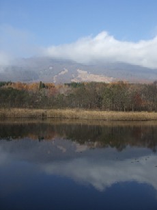湖畔に映った山がきれいでした。