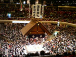 肝心の取り組みはと言えば、物凄い迫力に圧倒されっぱなし!2階のイス席でしたが、力士達の戦意が会場中に熱を帯びて充満し、一番一番が大興奮の連続でした。高見盛の気合い、千代大海が突っぱる音、土佐ノ海の立ち会い当たりの低いうなり声、北桜の脂汗、すべてが席まで伝わってきましたよ!