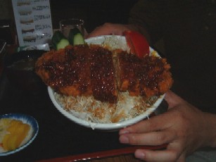 ジューシー&ボリューム満点のソースカツ丼が出てきます。
